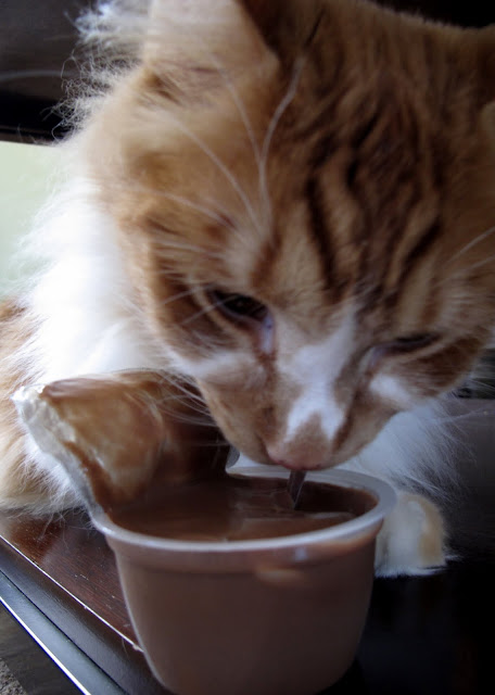 Chocolate was very cocoa-y to me, almost cake batter like. Chocolate in general isn't my favorite but I would try it again. Veganette loved it and felt it tasted like creamy milk chocolate. All KB said was "sniff, lick, sniff."