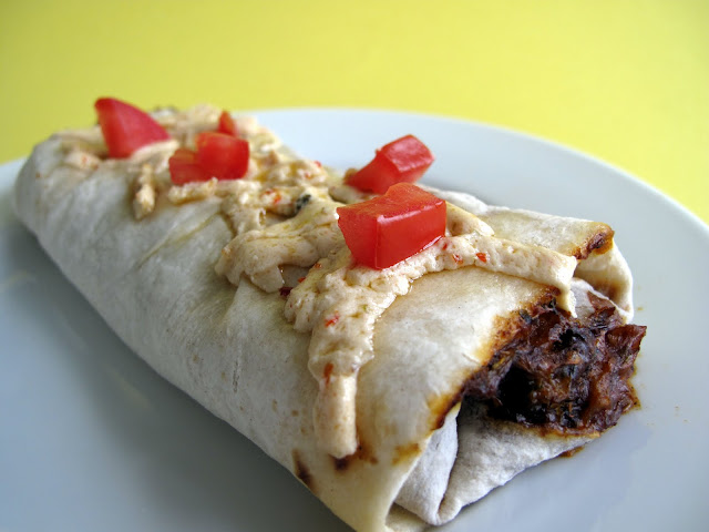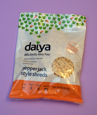 I asked the Laziest Vegans Facebook page for suggestions on what to use with my recently purchased Pepperjack Daiya Cheese. Trader Joe's Vegetable Burritos was one of the suggestions. I've never bought the burritos before (or even noticed them for that matter) so I pretty much had to pick them up. I made this a couple days ago and it was delish!