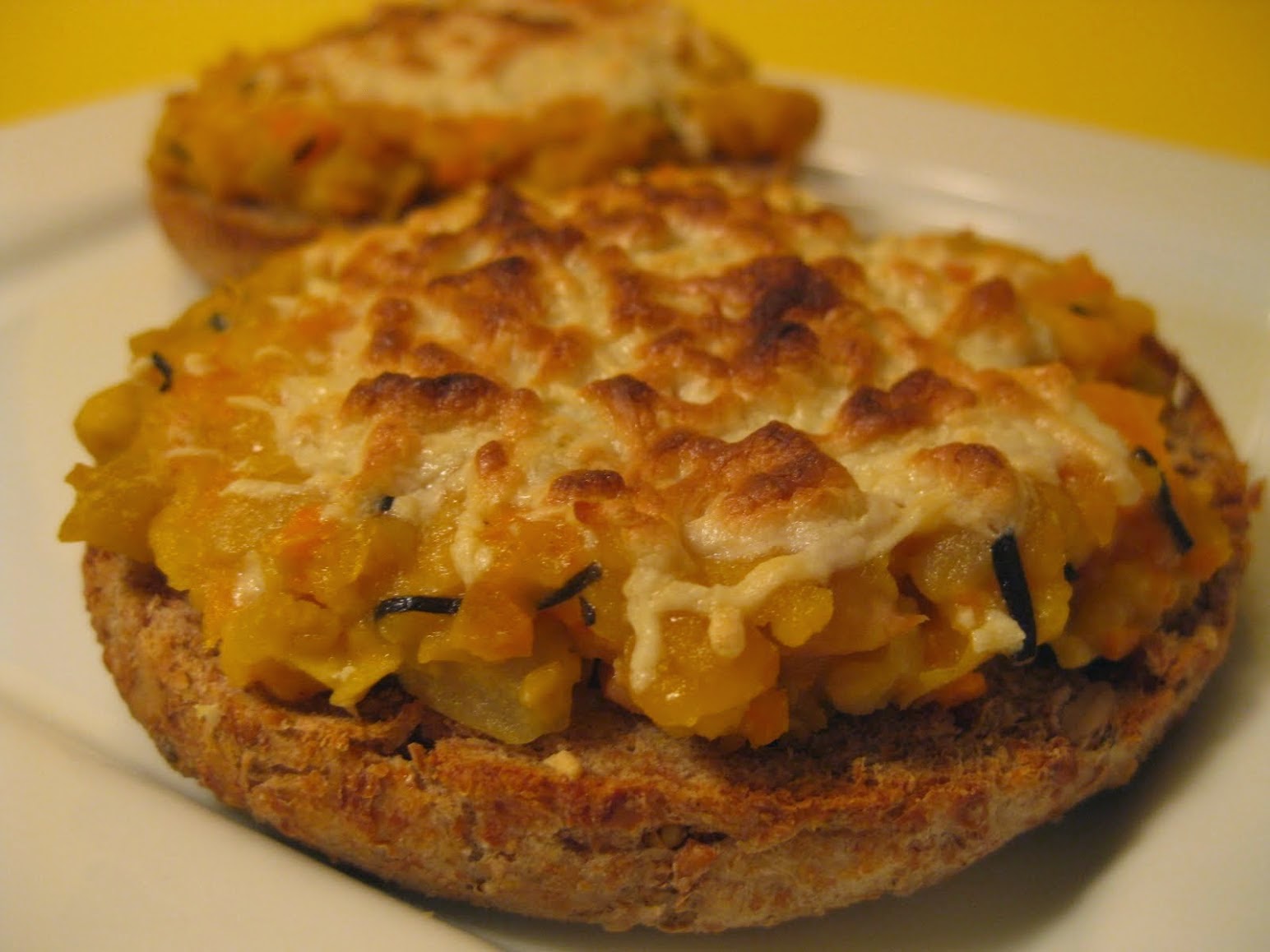 To celebrate this glorious day I decided to cook with Daiya! I know, I know, Laziest Vegans is all about not cooking. This will be one of the few times I cook for this blog so don't get used to it. Basically I whipped up some of Isa Chandra Moskowitz's Chickpea-Hijiki Salad Sammiches and topped them with Mozzarella Style Daiya. For the last step I broiled them in the oven for 5 minutes.