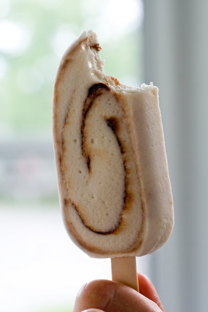 The different varieties of Tempt Ice Cream Bars are Coffee with Cream Swirls, Vanilla with Blueberry Pomegranate Swirls, Chocolate Fudge and Vanilla with Fudge Swirls. One of the claims on the packaging is that each bar is only 100 calories. If you've followed this blog for any length of time you know I'm not a calorie counter, but for the people that are I'm glad this bar is an option for you. Also the bars are also relatively low in fat.